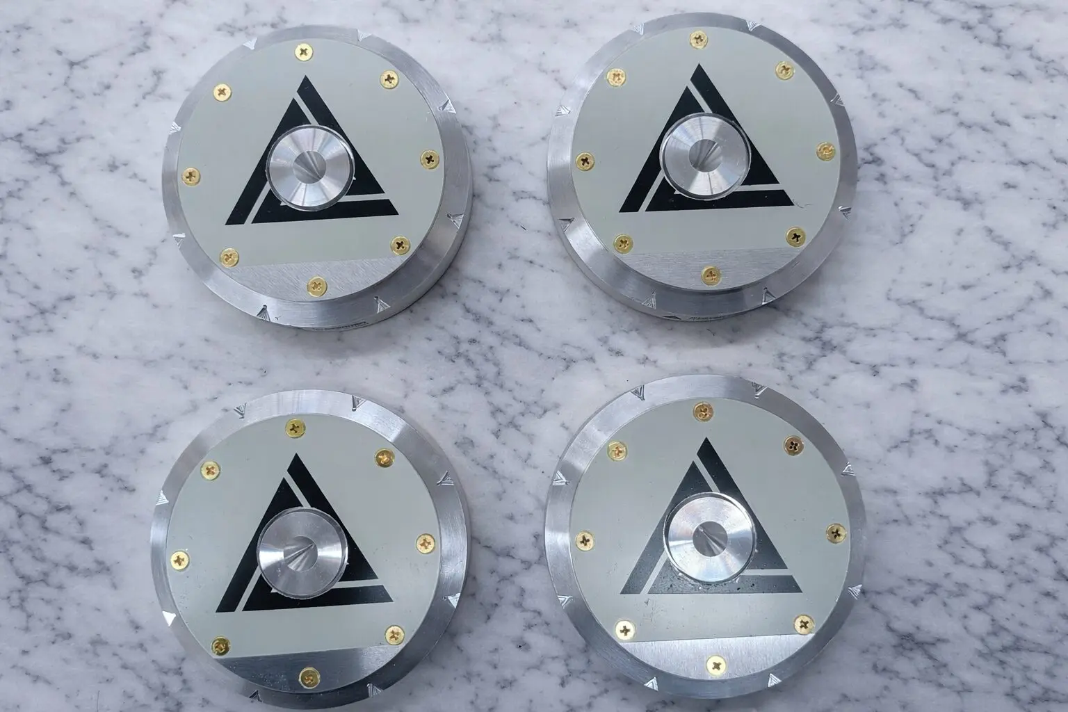 Each footer features a precision-machined top interface, enabling direct coupling with speaker spikes for controlled energy transfer, or a stable platform for flat-bottom components. This ensures seamless integration across a wide range of audio equipment.