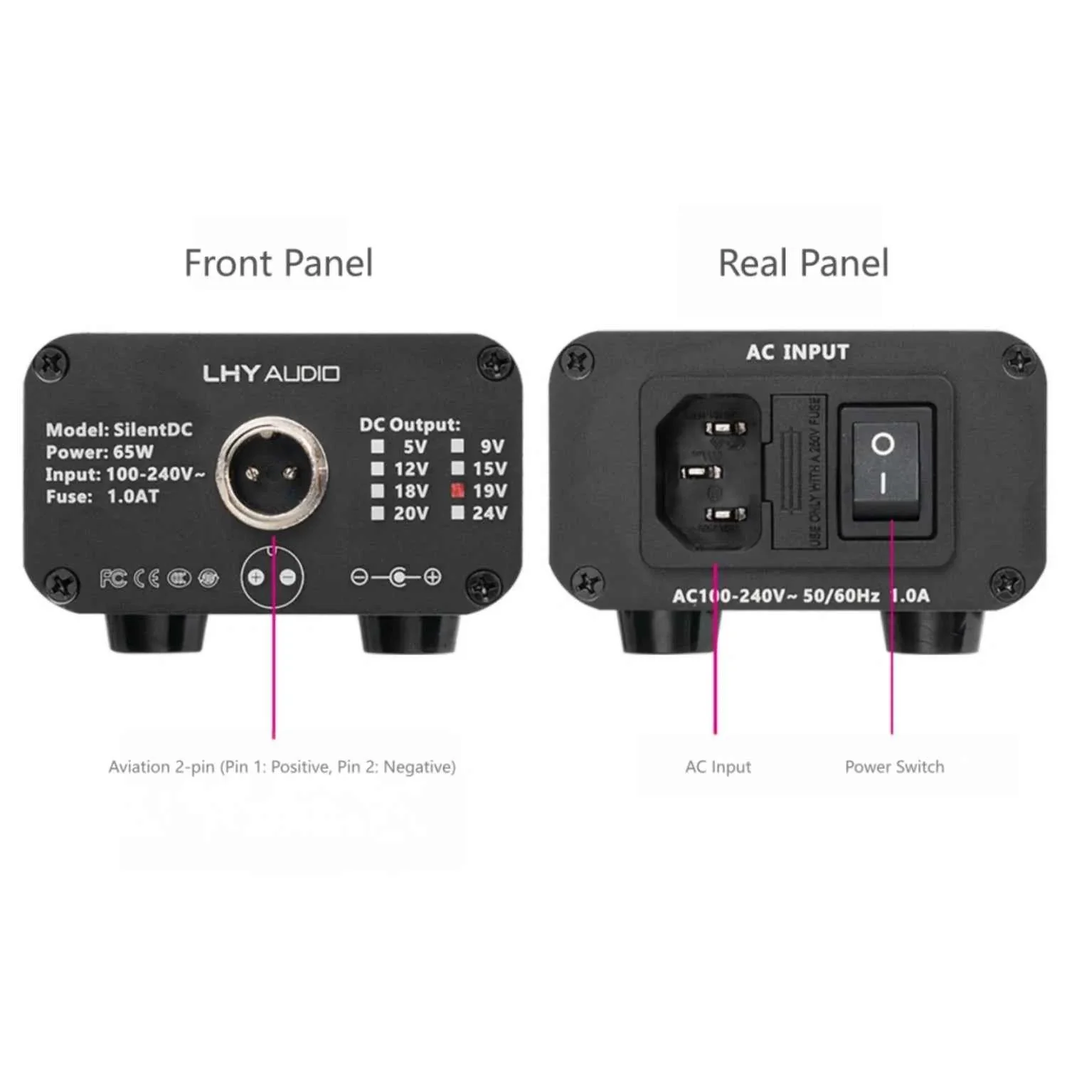 SilentDC offers multiple output voltage options, making it compatible with a wide range of high-end HiFi audio equipment. Users can choose based on their device’s input voltage, connector size, and polarity to